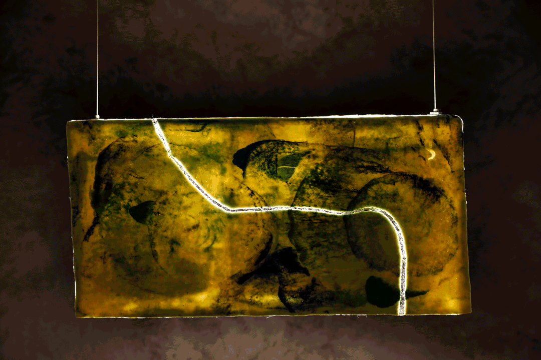 A box that’s far from the mundane. Dyadic Float is no ordinary light. Suspended delicately by slimline suspension wire, this back-to-back porcelain sheet box light evokes the midnight fissures of light viewed from space. But what truly sets it apart is the transformative power of Kintsugi's golden joinery. Embracing the philosophy of repair, recycle, and reuse, Dyadic Float seeks to counter the environmental impact of wastage. The practice of mending broken objects with gold-dusted lacquer breathes new life into discarded materials.
